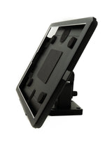 This holder in a trendy design integrates efficiency and safety for your trade fair show. The protective cover can be tilted 180° on all sides. The built-in lock prevents shoplifting. The holder is ideal for trade fairs, exhibitions, retail spaces and much more.