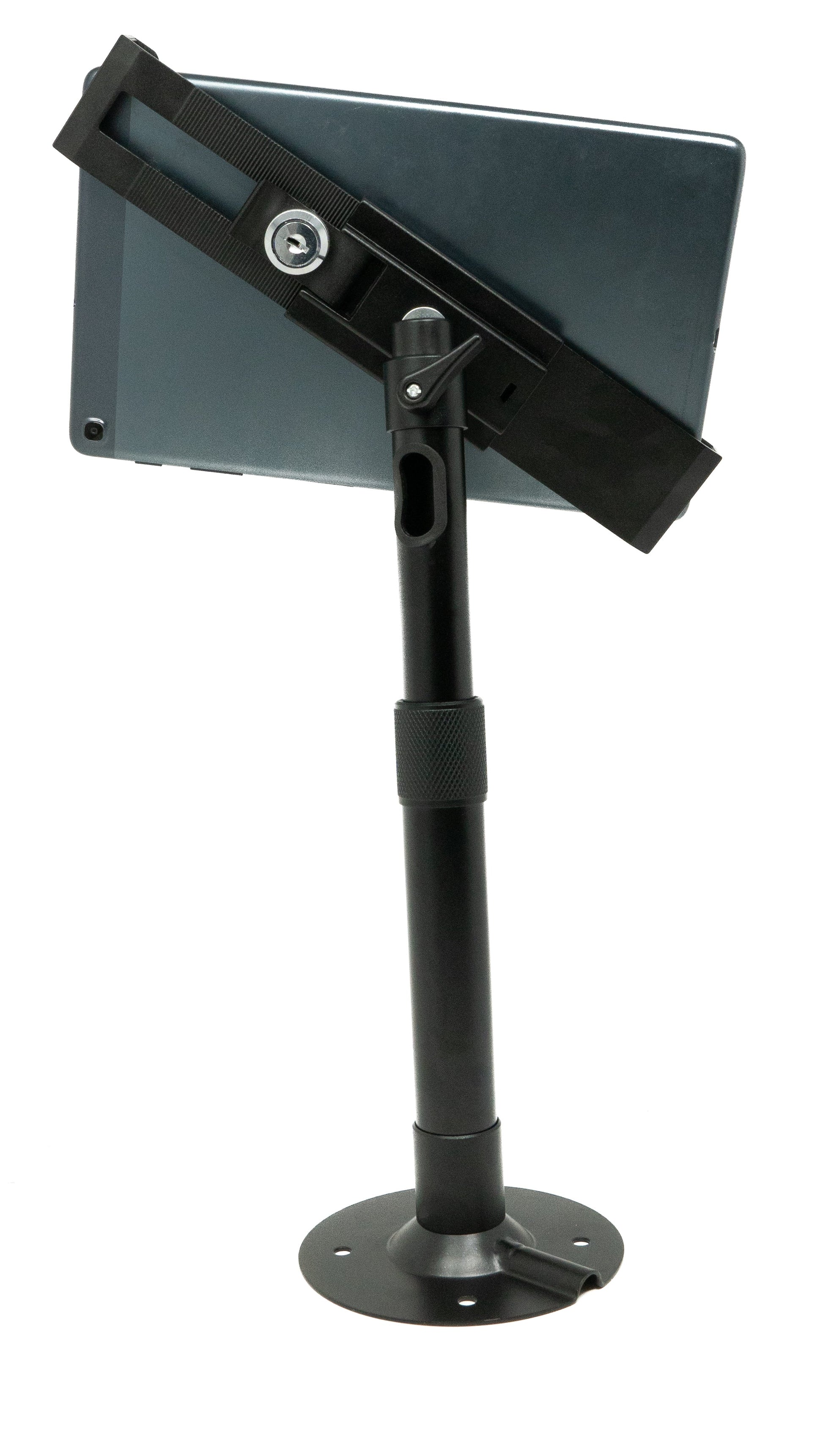 Le support verrouillable System-S offre une solution sécurisée et polyvalente pour placer des tablettes sur des tables et d'autres surfaces. Doté d'un bras de support réglable en hauteur (environ 37 à 51 cm) mobile à 360° et inclinable à 160°, ce support permet une flexibilité maximale dans le positionnement de votre tablette. Fini dans un noir élégant, il s'adapte parfaitement à différents styles de décoration intérieure. Convient aux tablettes avec une diagonale d'écran de 8,0" à 11,0".